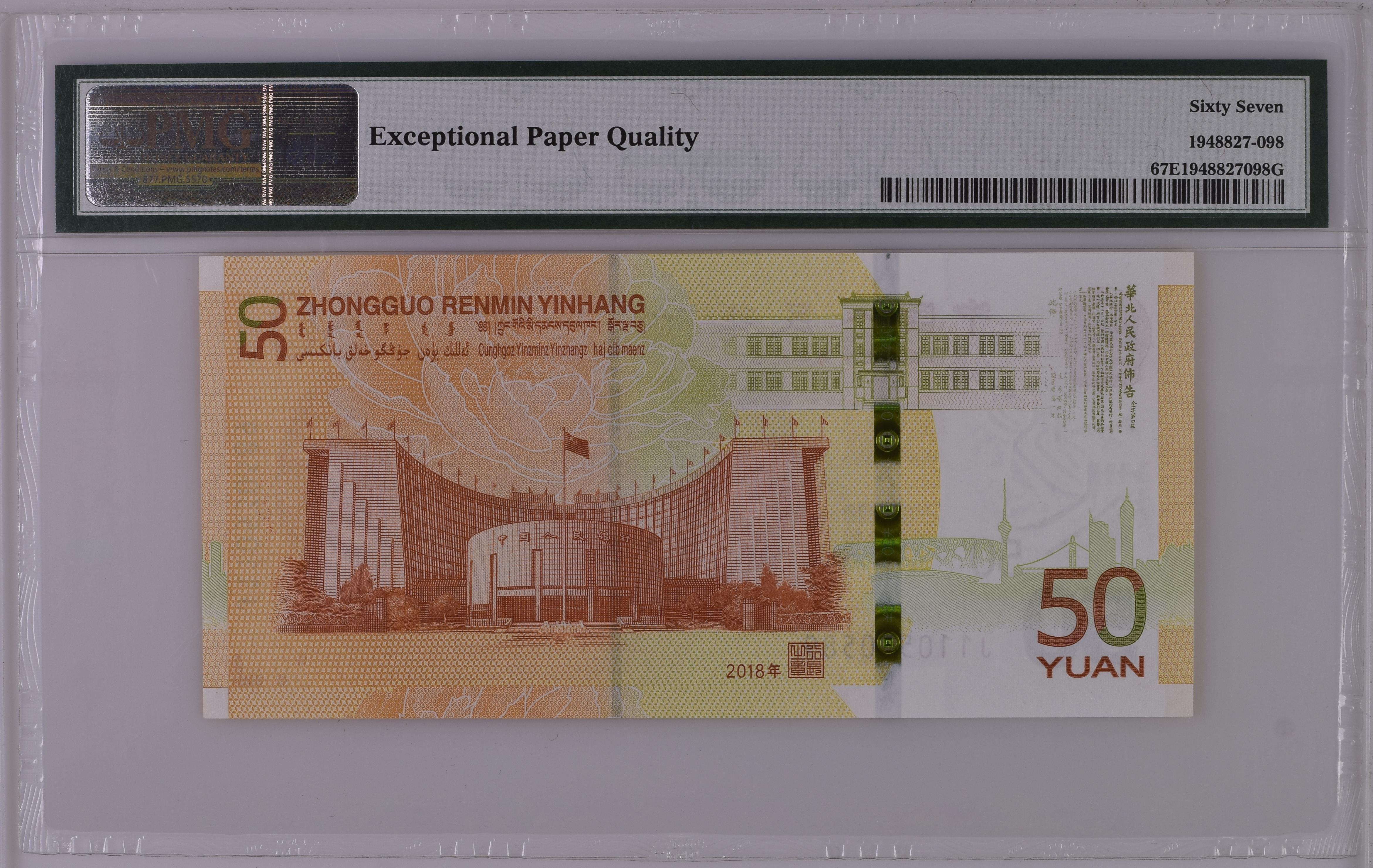纪念钞2018年人民币发行五十周年伍拾圆