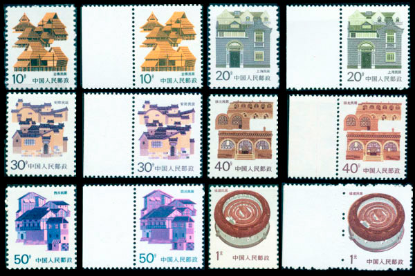 普23民居中的10分“云南民居”、20分“上海民居”、30分“安徽民居”、40分“陕北民居”、50分“四川民居”和1元“福建民居”有粗细齿票之分,粗齿票一般都是早期发行,细齿票一般是后期发行(20分票是细齿先出),细齿票的颜色较粗齿票鲜艳。此六枚(组)票号称“民居六珍“,其实也就是炒作的噱头而已。(下图中带边的票为细齿票,不带边的为粗齿票)